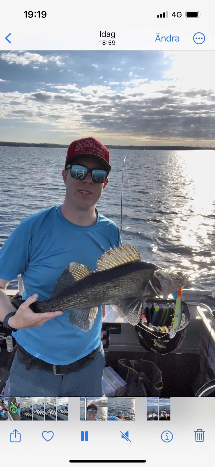 Började vid 14 tiden och det blev ett riktigt gösrace, nappade hejdlöst så jag hade fullt sjå å få i spöna igen. svänga, båten och bonka fisk 😅