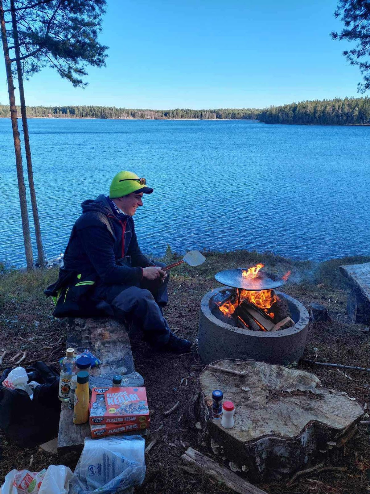 Förmiddagen var blåsig som helvete och vi tog tillflyckt till vindskyddet vid 12 snåret.vi brände in laggen ordentligt och avnjöt en lyxmiddag med kebeb.