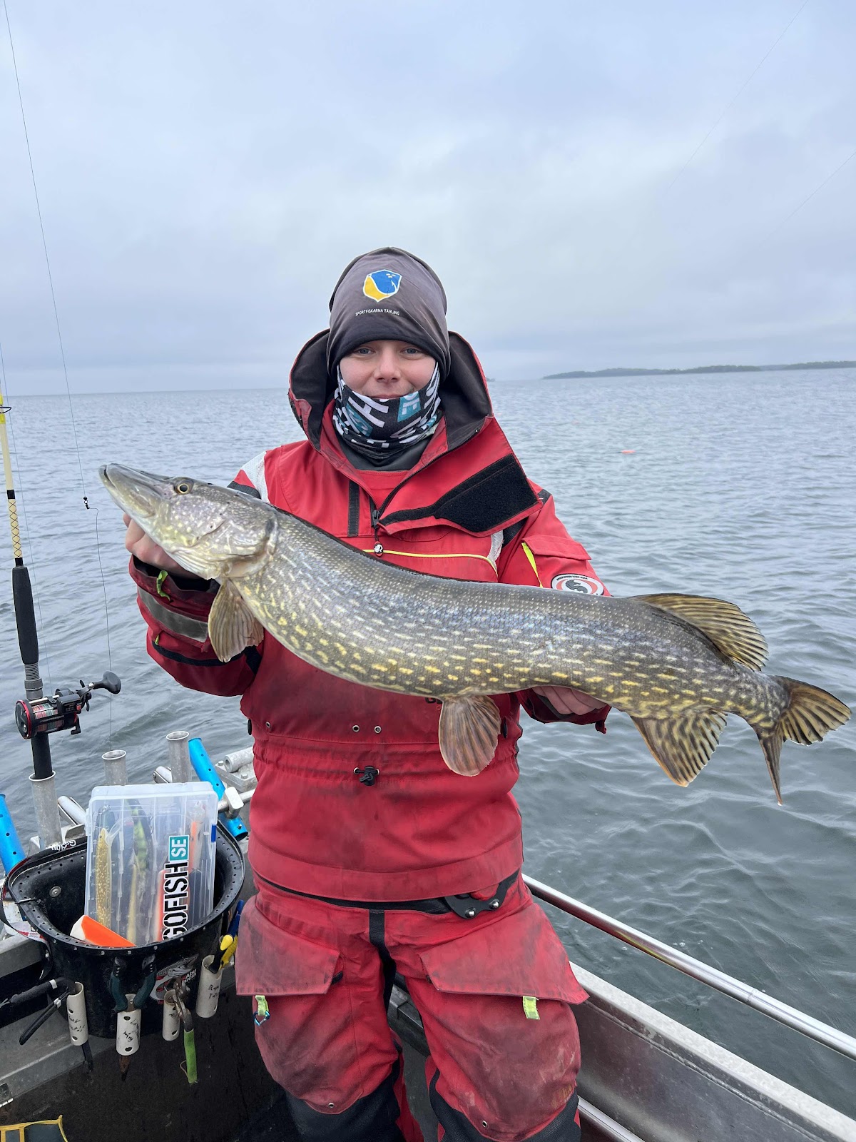 Kallt som skamm men vi fick ihop 6gäddor och den största på 96cm. Lite kul var att 5st fick st på samma rösvarta wobbler.