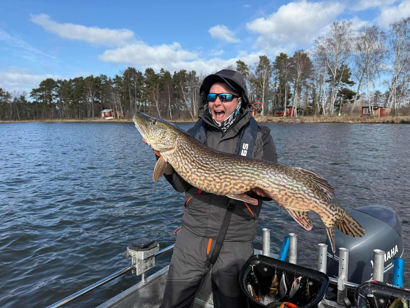 Sen kom vi in i vik nr 2 och batterierna till elmotorn var tomma så vi drev med vinden. Första kastet tar Rickard en riktig feting på 11kg och 115cm.