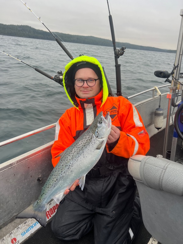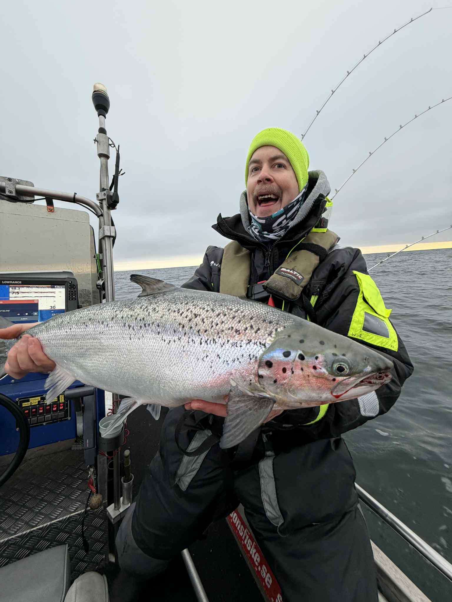jag å Daniel var ute på vättern och fixade jullaxen. Första fisken kom vid lunch. Sen var det en kort period med lite nappe innan vi fick ett par till innan mörkrets intåg.