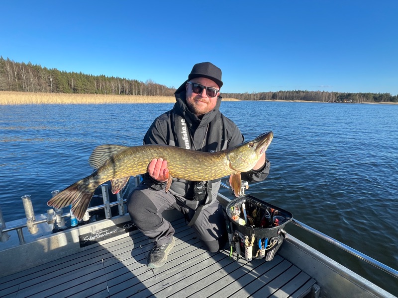 jag wille å jari var ute efter jobbet i fredags å prövade lite gädda. Jag å Wille fick var sin och jari tog 3 st fina med största på 102cm.